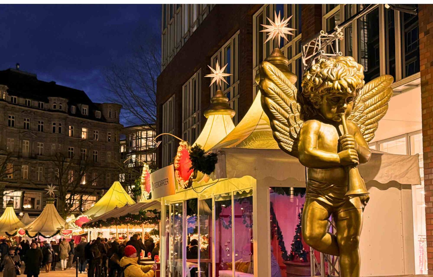 The Fleet Island, nestled between the Elbe and the Alster, is already one of the most beautiful places in Hamburg's city center. During the pre-Christmas season, it becomes a refuge away from shopping stress and street noise. The quiet enclosure of the square and its location by the water create a unique atmosphere at this small Christmas market. While it gets lively over at Jungfernstieg, a real sense of contemplation settles on Fleet Island. In addition to the usual hot drinks, selected stalls offer handmade and special items.